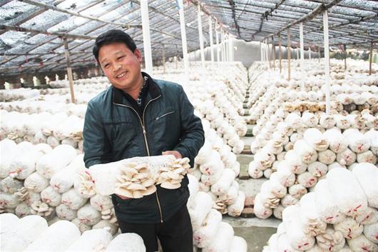 农村新报讯 15日,谷城县城关镇安岗村农民张平正在管理袋料平菇。年近五旬的张平掌握一手栽培平菇技术,决定不再外出打工。他说,每年栽培2万袋平菇,能保证近10万元收入。﹙通讯员马明刚摄﹚