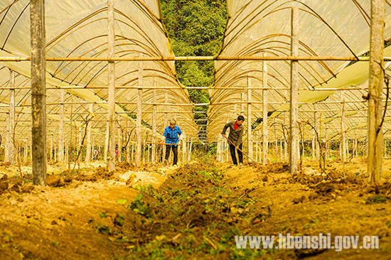 今年精准扶贫活动启动以来,恩施市白果乡积极探索,创立了合作社扶贫、企业、家庭农场扶贫带动扶贫等多种模式。该乡龙潭坝村圣浩葡萄专业合作社里常年有10多户贫困户在这里打工,全部是老人,每人每天70元;天禹石材厂里也接受了10个贫困户家庭的劳力打工。