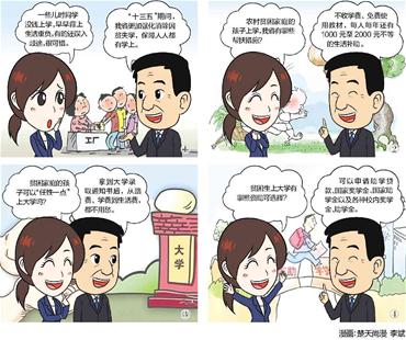 听到这些振奋人心的消息,楚楚高兴极了:“除了上面这些政策,贫困家庭的孩子上大学有帮扶措施吗?”刘传铁说,我们鼓励贫困家庭的孩子考大学、考重点大学。考上大学以后,从路费、学费、到生活费,都不用愁。