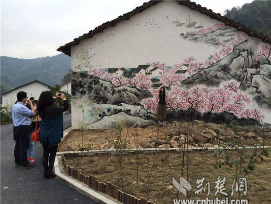 今年初,为了深入贯彻国务院《关于推进文化创意和设计服务与相关产业融合发展的相关意见》(国发2014号)和习近平总书记关于美丽中国和生态文明建设的重要精神,在荆楚大地上掀起建设美丽村镇和引导城市居民到乡村旅游的热潮,湖北省旅游局启动乡村旅游锦上添“画”活动,选取大冶沼山镇桃花村、麻城龟峰山脚下的熊家铺旅游小镇、罗田圣人堂村和徐凤冲村等村镇为试点,发掘当地乡土文化亮点,在村部或者游客集中的地方,通过墙面手绘等文化创意形式,为最美乡村增添点睛之笔。