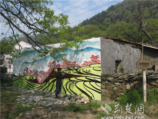 据悉,继这几村的试点工作之后,黄石铁山区和宜昌兴山县立马行动起来。铁山区借举办槐花节之机,在矿山公园与东方山景区之间的熊家境村,以秀美的梯田、挺拔的古树和牛群为主题创作了一组墙绘,既突出了当地民风民俗,又使画与当地风景和谐融汇,为自然和人文景观增添浓浓文化味道。