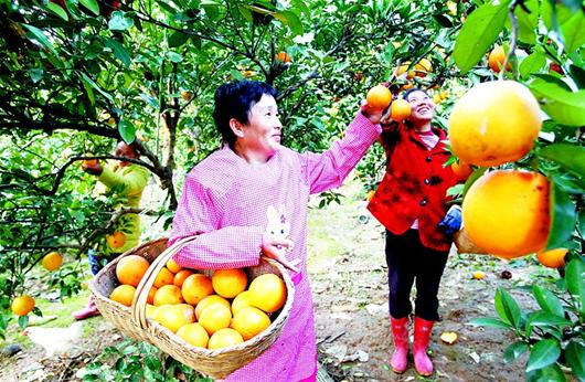 湖北日报讯 1日,阳新县城东新区新塘大队农工喜摘脐橙。该县引进优良脐橙品种,引导全县854户农户种植脐橙4756亩,同时带动3000多名农民务工,增加收入脱贫致富。