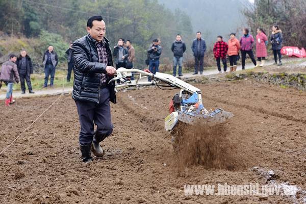 1月4日,技术人员进行操作演示,通过微耕机耕作马铃薯栽培田块。