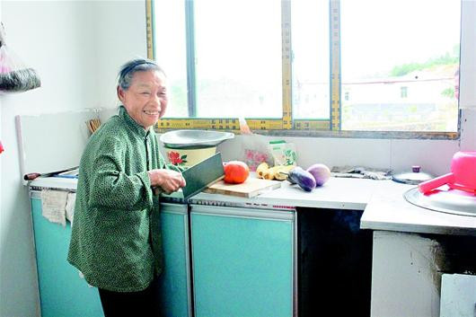 湖北日报讯 图为:蕲春:入住新房的大屋村7组76岁五保老人吴水枝准备做饭。