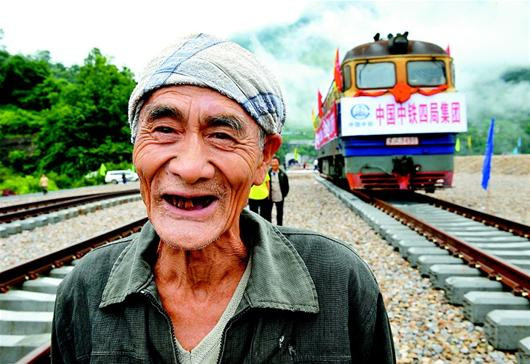 图为:宜万铁路铺轨到巴东县野三关火车站,农民柳和凯第一次看到火车。 (本报资料照片 通讯员 文林 摄)