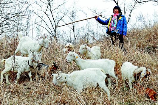 昨日,郧西县观音镇垭子湾村村民解远林在山上放羊。这10只羊是她从邦鑫马头羊养殖专业合作社免费“领养”的,待羊出栏后,再由合作社“回收”,每只羊可为村民带来 1000元以上纯收入。该合作社自 2014年起为镇里40余户村民实行零投入、零风险“代养模式”,帮助村民尽快摆脱贫困。