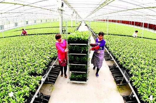 湖北日报讯 连日来,钟祥市柴湖镇罗城村的智能温控花卉大棚里一片繁忙,该村一批精准扶贫户在棚内务工,实现了在家门口就业。近年来,柴湖镇引导扶贫户加入花卉苗木、大棚蔬菜等种植合作社,流转土地3.2万亩,帮助贫困户有效增收致富。(记者 张鸿 视界网 周群 张君 摄)