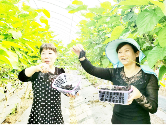 阿尔迪有机农业生态园,贫困户帮忙采摘桑葚