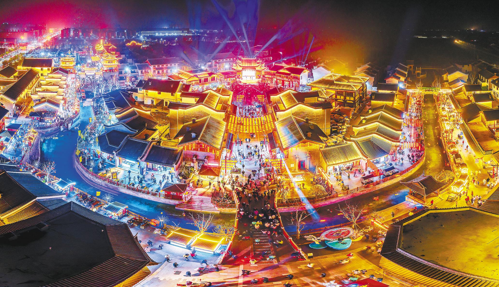 2月13日,襄阳市樊城区关圣古镇旅游景区流光溢彩。元宵佳节临近,人们赏花灯、看表演、尝美食,处处洋溢着幸福喜乐的节日氛围。