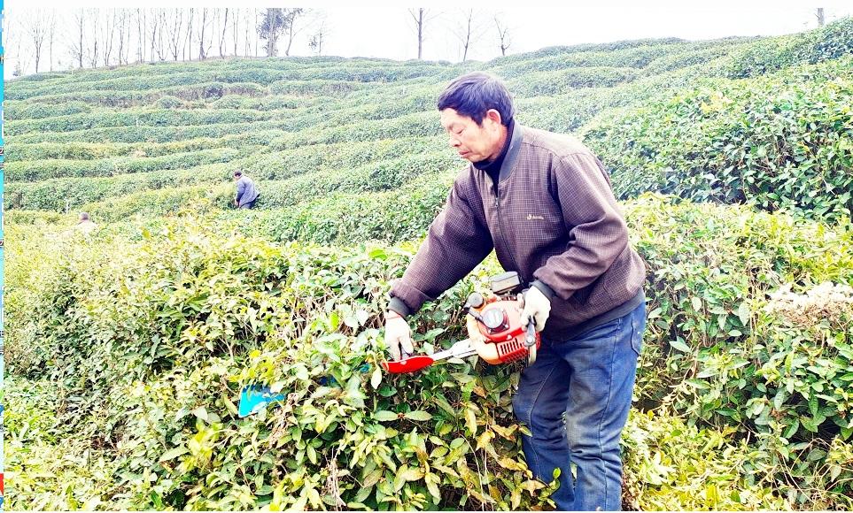3月17日,郧西县神雾岭千亩茶叶基地里,机剪队穿梭在茶园修剪茶树。近年来,郧西将茶叶产业纳入乡村振兴产业链,建设高标准茶园3.7万亩,去年茶叶产值1.5亿余元。(农村新报通讯员 付书杰 摄)