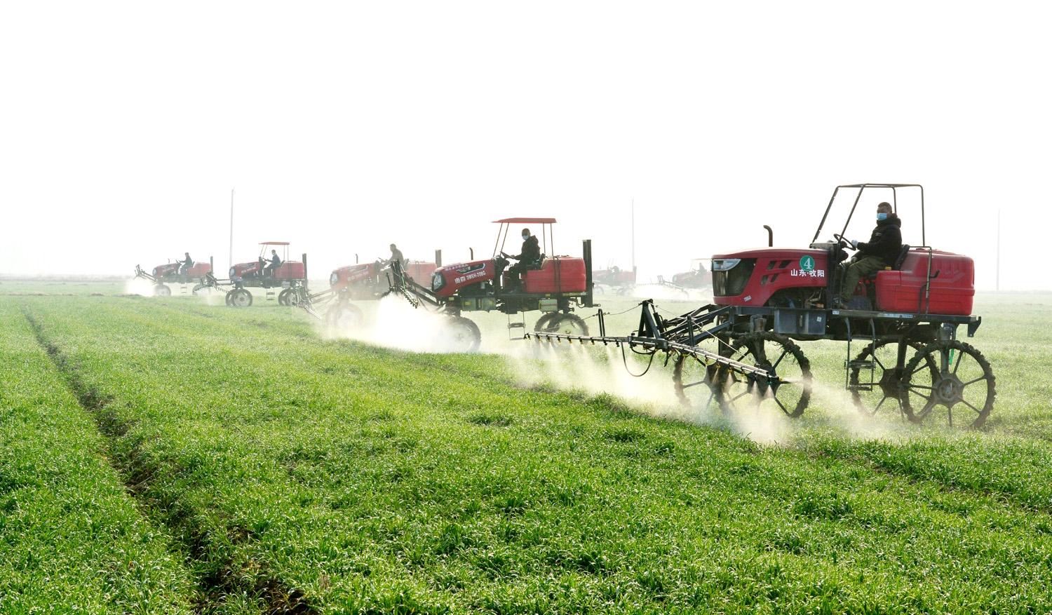 近日,襄阳市襄州区张家集镇现代农业示范区,农民抢抓农时,利用大型植保机和无人机对小麦进行喷药管护,为夏粮稳产增产打下基础。(农村新报通讯员 安富斌 摄)