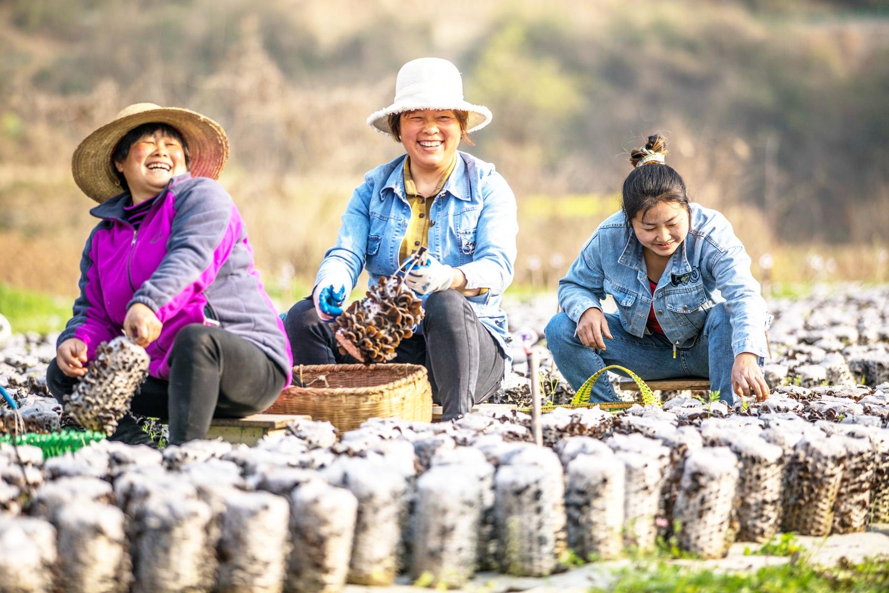 近日,竹山县深河乡秦家村4家农户抱团试种的10万棒黑木耳进入采收期,预计产值10万元以上。近年来,深河乡大力发展木耳种植,巩固脱贫攻坚成果。(农村新报通讯员 章磊 曾广学 摄)