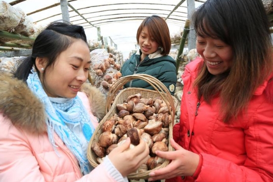 11月25日,竹山县双台乡财政所工作人员在茅塔寺村菇木源种植专业合作社了解香菇生产和销售情况。近两年,该县财政部门先后投入5000多万元专项基金重点扶持食用菌制棒、贮藏、保鲜和深加工等农业产业化科技开发项目。今年,该县通过“公司+合作社+农民”模式,发展食用菌3900万棒,带动种植户人均年增收5000多元。(通讯员 陈昌荣 王坤 毛天姿 摄)