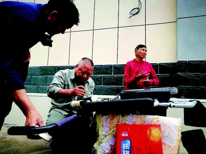 徐国良帮村里老人修轮椅。
