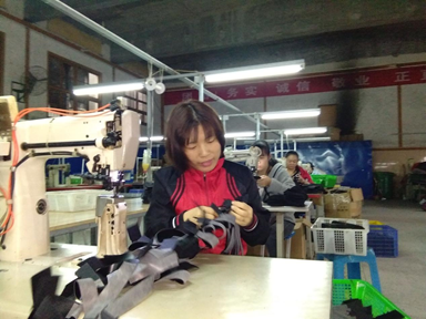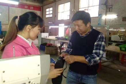 贫困户加工鞋面。