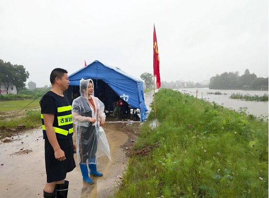 面对严峻的防汛形势,她带领着村两委干部,在太湖港流经太晖村的1200米大堤沿岸,设置防汛值班巡逻点,24小时监控水位变化,每天同值班人员多次沿渠拉网式排查,确保无溃堤隐患。这段日子,她不分日夜,没有了周末。她已经很久没有笑容了,替代的是越来越憔悴的脸庞。但是,大雨中、深夜里、大堤上那飘扬的党旗,一直在守护者身后的万千群众。
