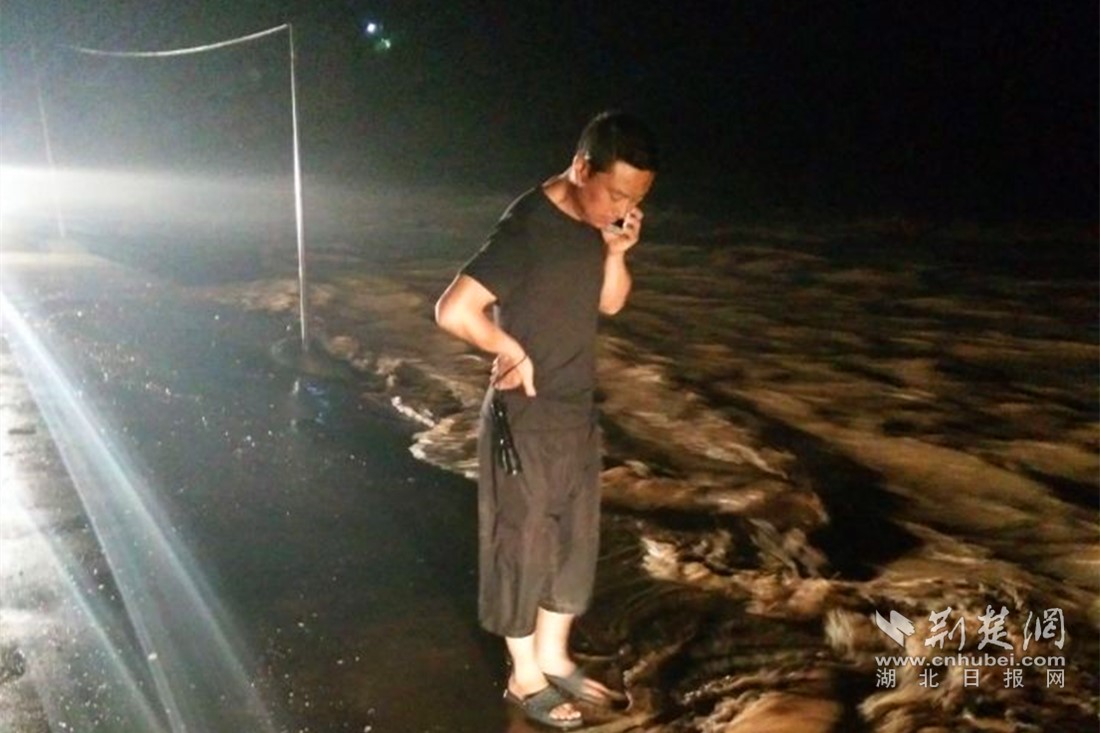 山洪暴发,余丙华查看灾情,指挥救灾。(夷陵区委宣传部 供图)