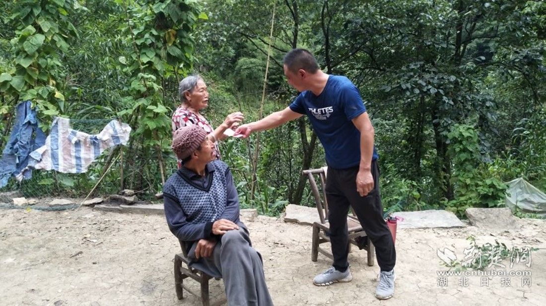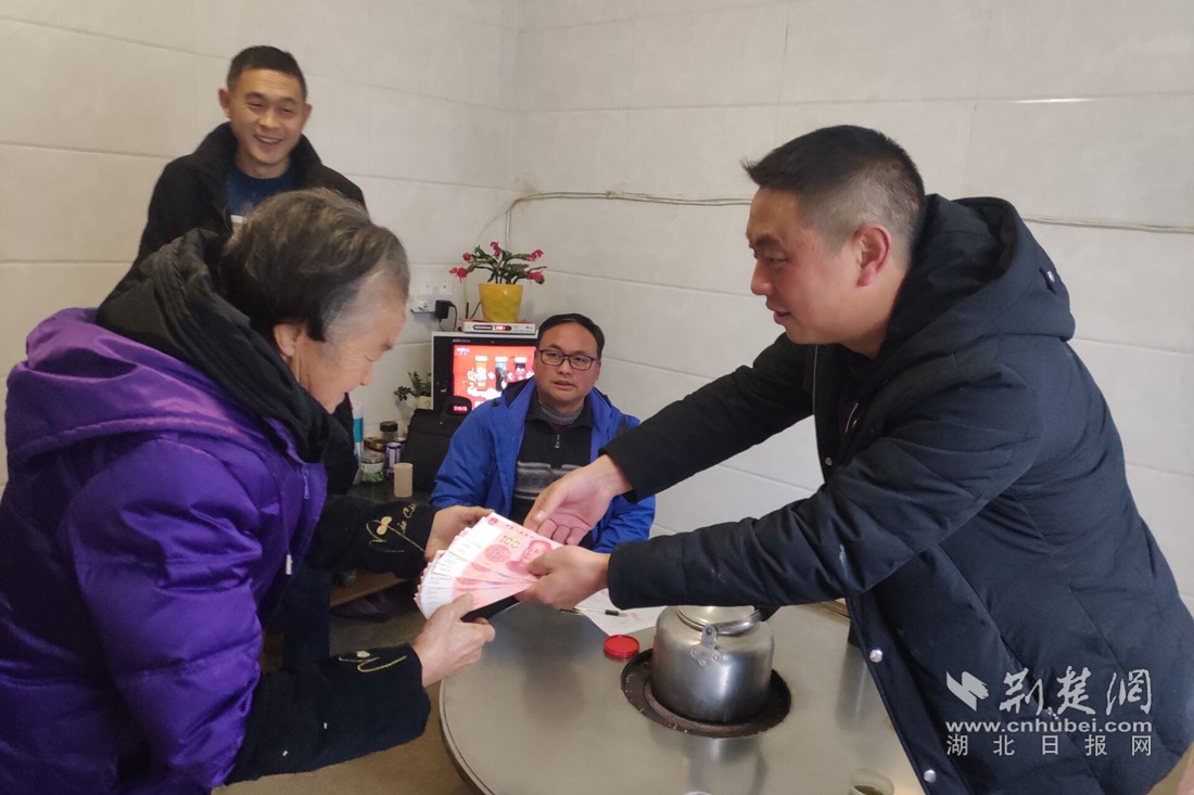 为村里老人发放补助。(夷陵区委宣传部 供图)