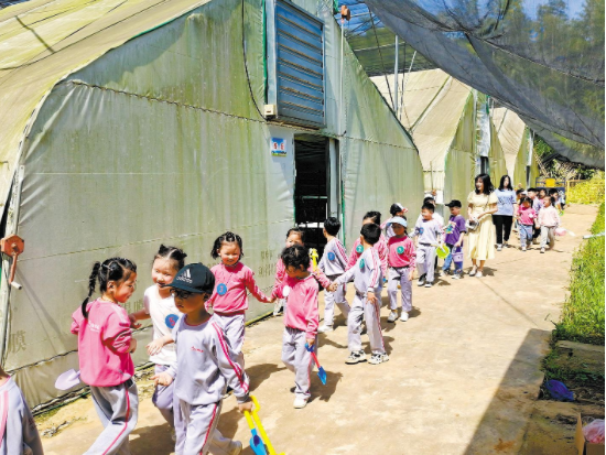李平华将蘑菇大棚改造成了儿童乐园。 (图片由李平华提供)