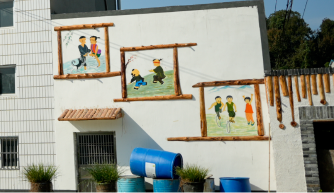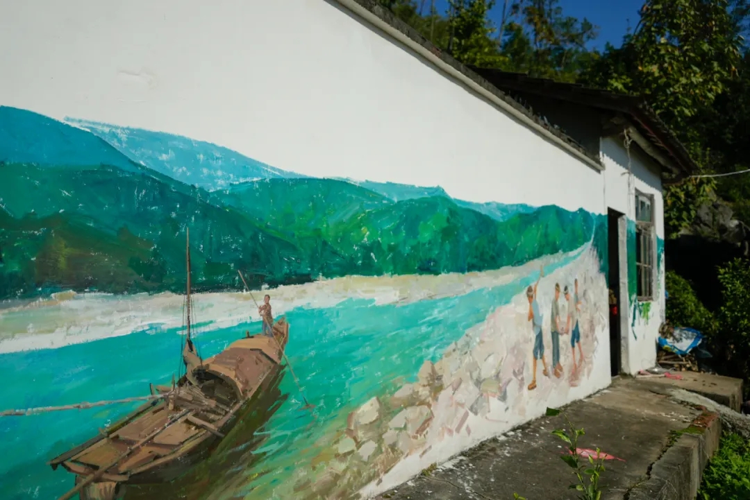 70岁的饶友全是房屋主人他告诉记者自家房子原来平平无奇画上清江放排的墙绘后很多过路的游人会停下来拍照合影偶尔还会买些他家自产的柑橘能带来一些收益