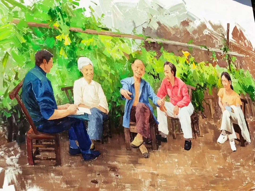 讲述了当地百姓农闲之余,围坐一起讲故事的场景