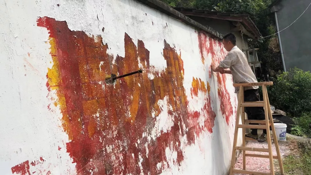 为了给美丽乡村建设添砖加瓦让自己的家乡更美丽他向村委会提出了自己的想法给乡村披上美丽的外套!在村委会的大力支持下他招来油漆匠,搭好脚手架
