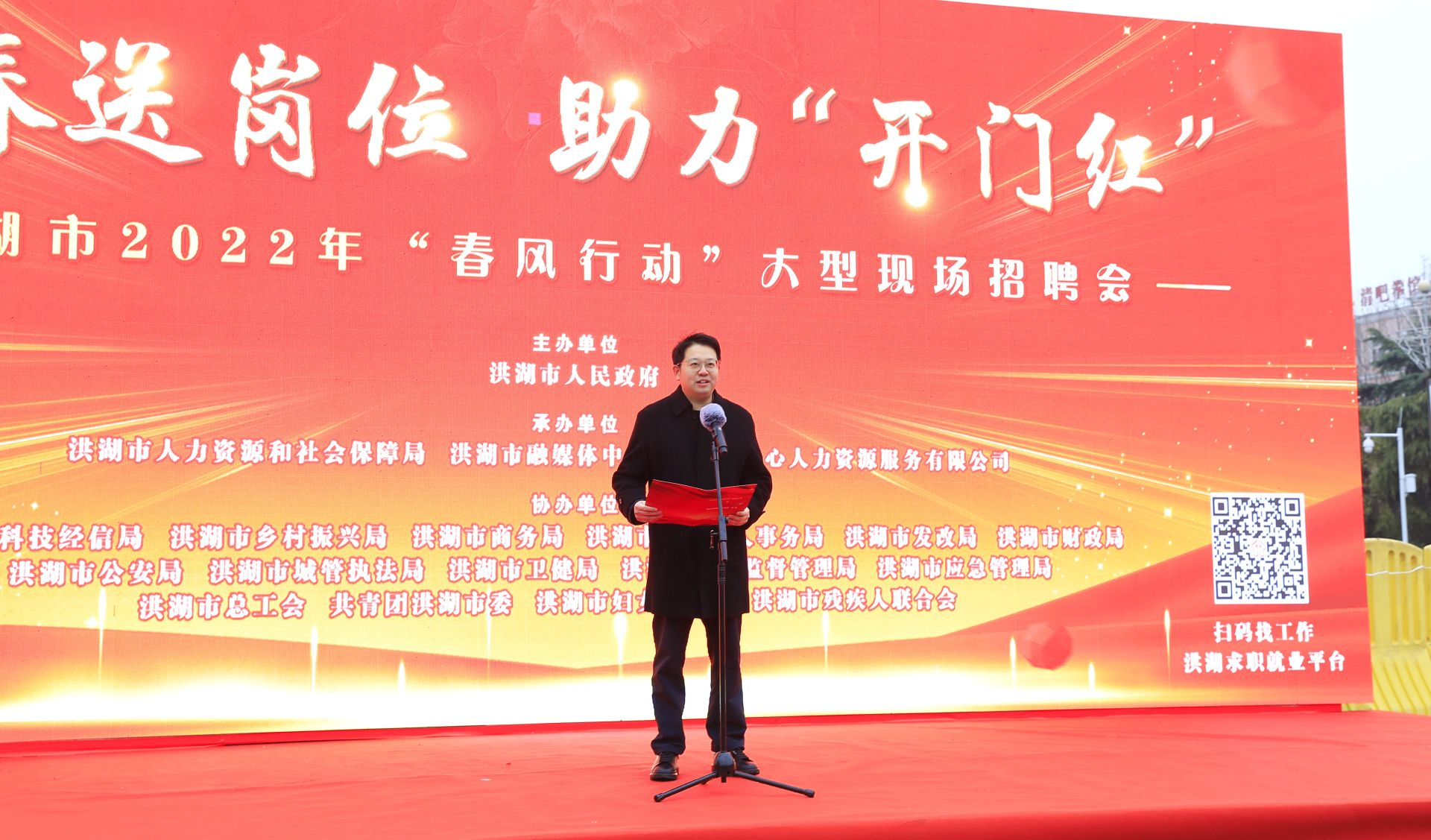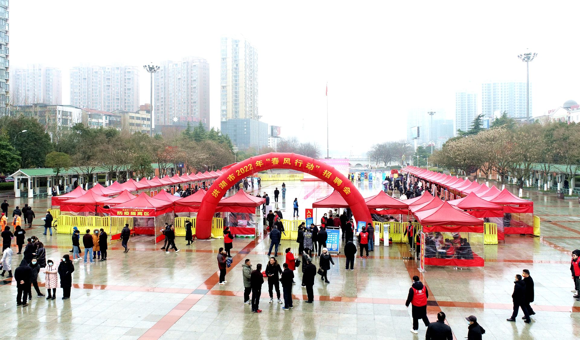 新春伊始,细雨迎新。2月11日上午,洪湖市2022年“新春送岗位,助力开门红”春风行动大型现场招聘会在荷花广场正式启动,洪湖市领导熊燃、胡纯玉、余成等参加启动仪式;洪湖市乡村振兴局杨凯、袁承东、王芬等市直有关科局负责人也在招聘会活动现场。