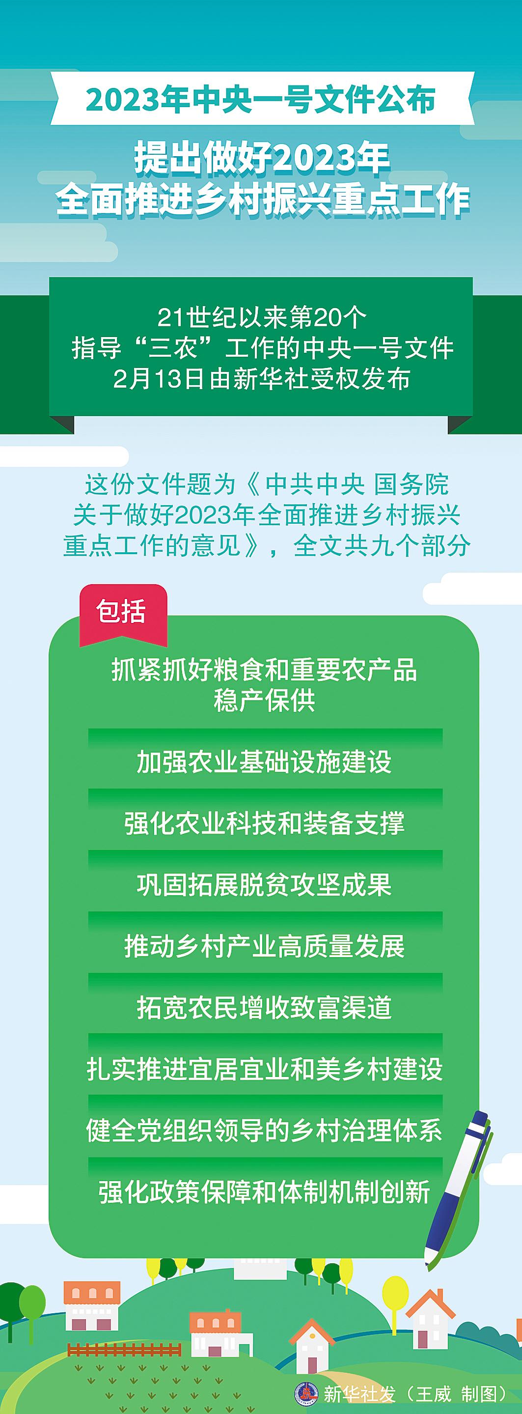 做好2023年和今后一个时期“三农”工作,要坚持以习近平新时代中国特色社会主义思想为指导,全面贯彻落实党的二十大精神,深入贯彻落实习近平总书记关于“三农”工作的重要论述,坚持和加强党对“三农”工作的全面领导,坚持农业农村优先发展,坚持城乡融合发展,强化科技创新和制度创新,坚决守牢确保粮食安全、防止规模性返贫等底线,扎实推进乡村发展、乡村建设、乡村治理等重点工作,加快建设农业强国,建设宜居宜业和美乡村,为全面建设社会主义现代化国家开好局起好步打下坚实基础。
