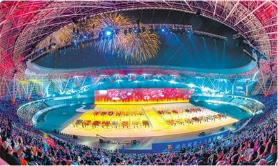 夜幕下的宜昌奥林匹克体育中心,流光溢彩、璀璨耀人。形似百合花的体育场内,座无虚席、群情振奋。