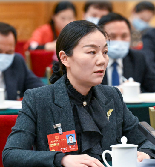 出席十四届全国人大一次会议的魏巧代表在发言(2023年3月5日摄)。新华社记者 李学仁 摄