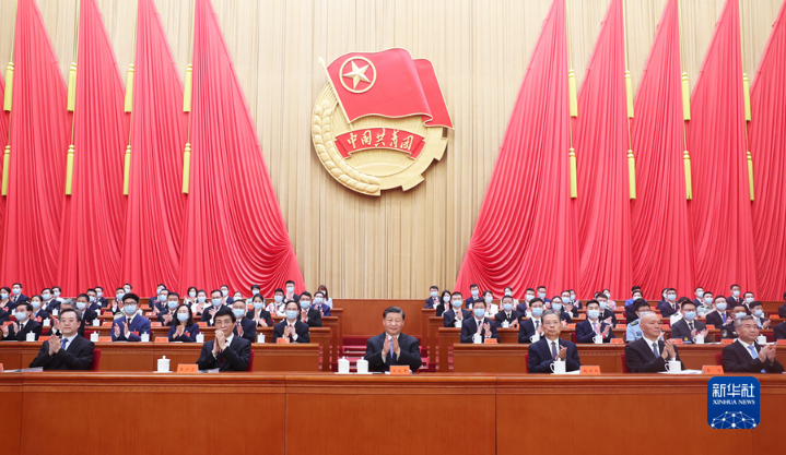 6月19日,中国共产主义青年团第十九次全国代表大会在北京人民大会堂开幕。习近平、赵乐际、王沪宁、蔡奇、丁薛祥、李希等在主席台就座,祝贺大会召开。新华社记者 鞠鹏 摄