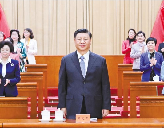 10月23日,中国妇女第十三次全国代表大会在北京人民大会堂开幕。这是中共中央总书记、国家主席、中央军委主席习近平在主席台向与会代表致意。(新华社发)