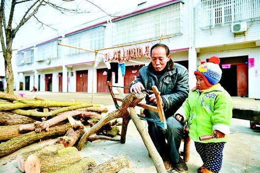 图为:安陆市孛畈镇杨堰村集中建起移民小区,村民杨长江在新居前准备越冬木柴。 (记者 刘曙松 视界网 程荣东 摄)