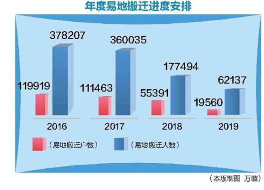 中央要求易地扶贫搬迁任务在“十三五”内全部完成,省委省政府要求提前一年完成我省任务。具体划定了时间进度标准:2016年完成119919户378207人;2017年完成111463户360035人;2018年完成55391万户177494人;2019年完成19560户62137人。