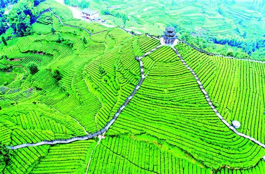 7月7日,宣恩县万寨乡伍家台村的有机茶园里绿意盎然。宣恩县茶叶种植面积24.2万亩,已逐步建成集“茶基地、茶加工、茶交易、茶文化、茶旅游”五位一体的茶叶产业体系,助力土家族、苗族等少数民族农民脱贫增收。