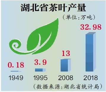 1949年,湖北茶园面积13万亩,茶叶产量0.18万吨,分别仅占全国茶园总面积和茶叶总产量的5%和2%,远远落后于其他产茶省份。