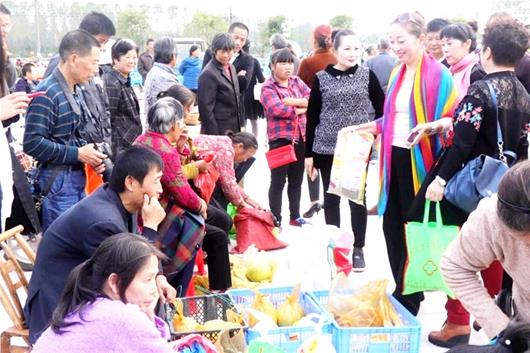 10月17日,石首市委宣传部在调关镇观音庵村举办“邀你一起,消费扶贫”文艺演出。现场除了表演外,市委宣传部帮扶干部还“变身”售货员,向观众推销土鸡蛋、红薯、柚子、柿子等,卖出近万元土货。