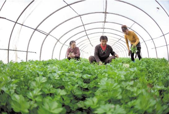 12月4日,孝昌县陡山乡新街村芹菜大棚内,村民忙着采收芹菜。该县1万亩蔬菜大棚内种植的芹菜、莴笋、红菜薹等蔬菜陆续迎来丰收期,即将销往武汉、孝感等周边城市的超市以及农贸市场,丰富居民菜篮子。