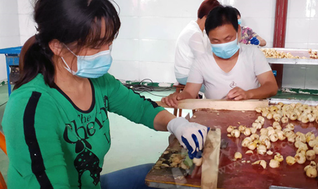 荆楚扶贫网消息(通讯员 高炜 摄)6月21日,在巴东县水布垭镇百药源药业有限公司厂房内,工人正在抓紧加工新鲜贝母。