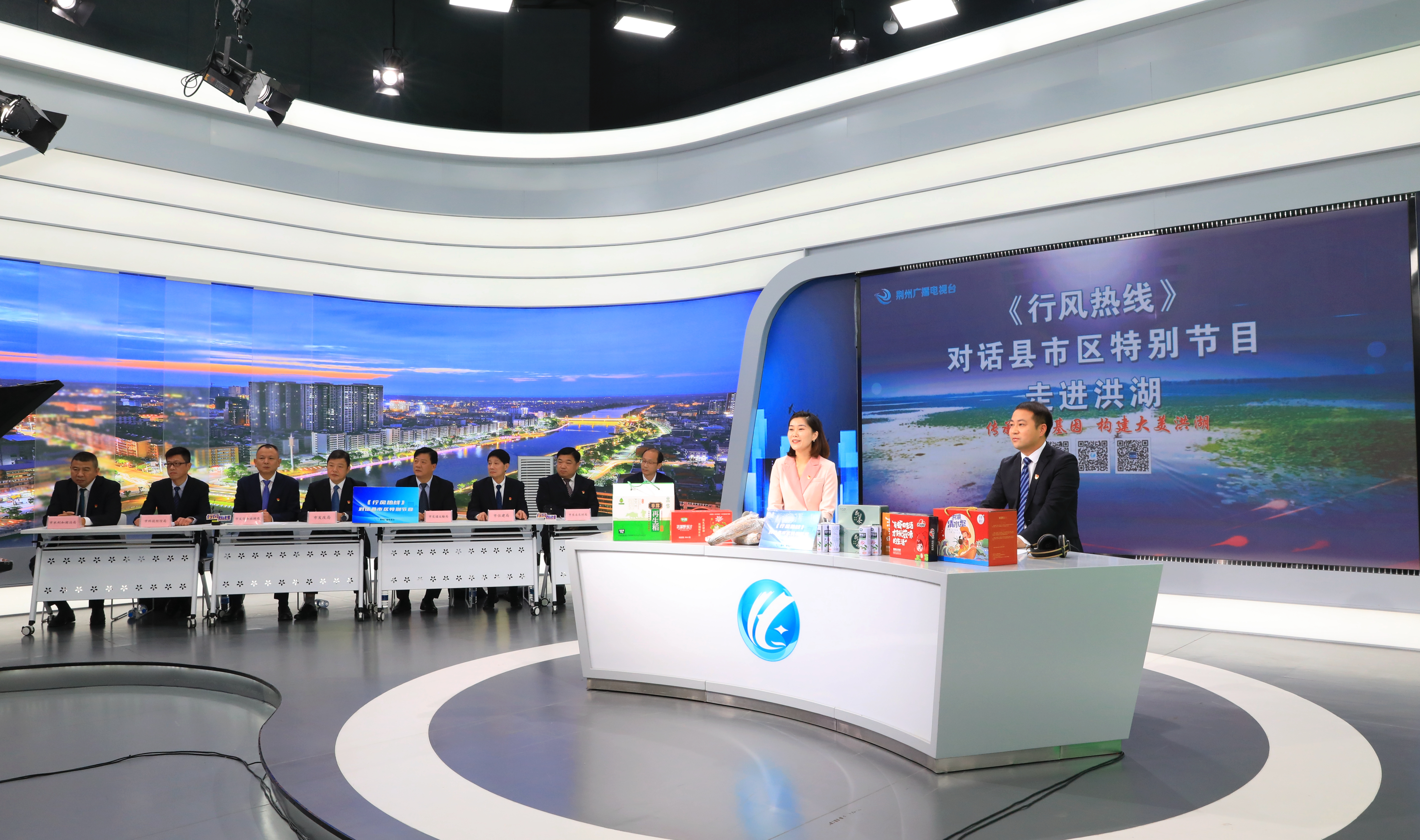 10月30日上午,荆州广播电视台《行风热线》“对话县市区”特别节目走进我市,市委副书记、代理市长林继军做客直播间,与相关部门负责人一道,围绕洪湖红色旅游发展、党史学习教育、“我为群众办实事”、“十四五”发展规划等主题,与广大市民在线对话交流。贺龙元帅女儿贺晓明作为特殊嘉宾,通过视频采访的方式,远程参与节目。