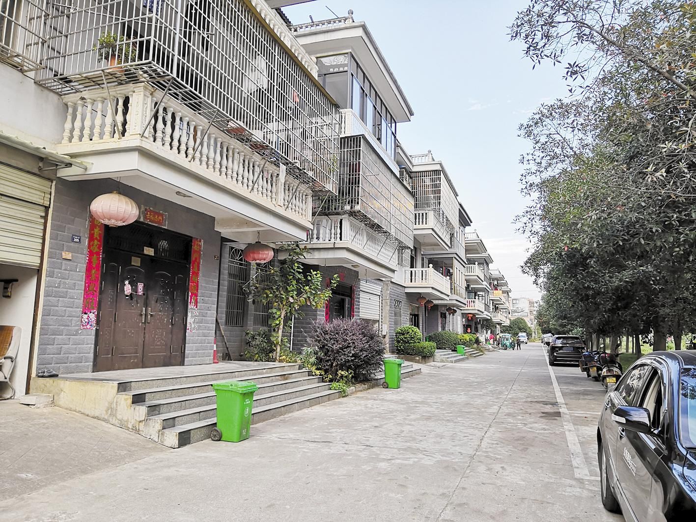 走进小区,一栋栋三层小楼整齐排列,公共区域干净整洁,绿化带郁郁葱葱,围挡、道闸、监控、路灯等基础设施一应俱全。