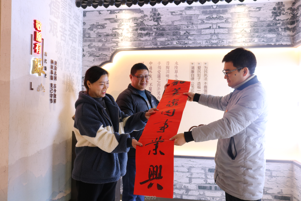 为营造风清气正、快乐祥和的节庆氛围,熊河镇纪委邀请江陵书法爱好者走进乡村,书写“廉味”对联。活动现场,书法爱好者们挥毫泼墨,一幅幅立意新颖、寓意丰富的春联从笔端流泻而出,弘扬清正廉洁的时代主旋律,让在场的干部群众感觉缕缕清风扑面来。